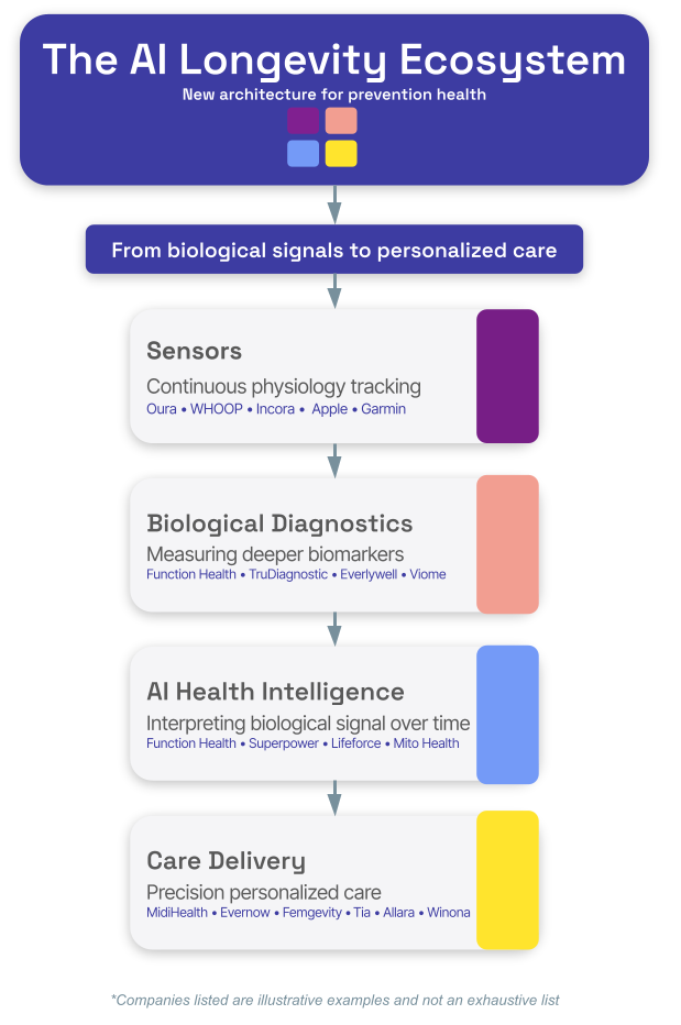 What is emerging is not a single company solving prevention, but an entire technology stack designed to support health optimization.